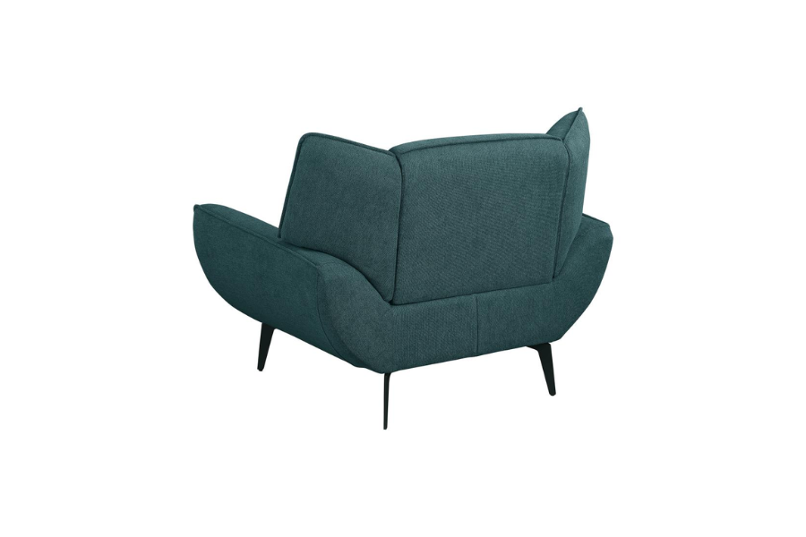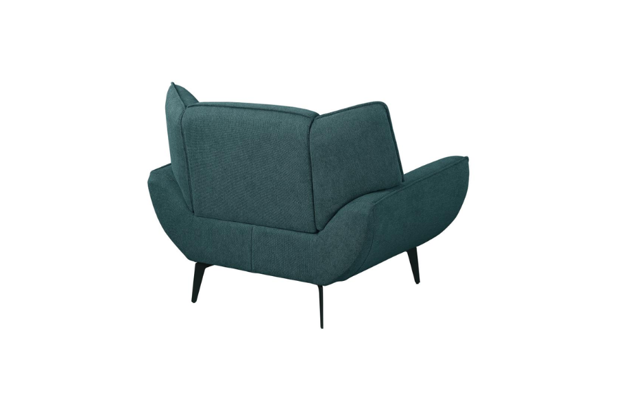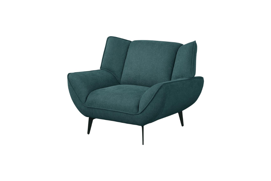 * Extra-wide chair with mid-century modern vibes provides comfort and style for lounging and reading; perfect for compact spaces and apartments * Teal fabric upholstery with flared arms, wing backs, and non-removable seat and back cushion create a luxurious look * Tapered black metal legs coordinate with the beautiful teal upholstery * Ideal for creating a lush palette choice * A great choice for adding comfort and style to any living space |