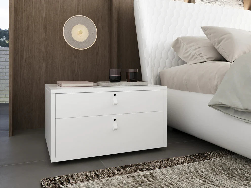 The Agoura nightstand in white by Casabianca Home provides both versatile style and comfort with a ultra-modern that can easily be integrated into your current bedroom decor. This Agoura nightstand features two soft close drawers adding elegance with functionality to your space.