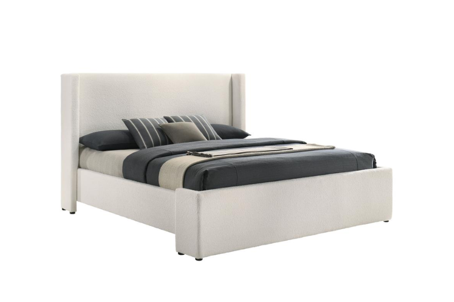 Alamosa Boucle Upholstered Eastern King Platform Bed White 310078KE