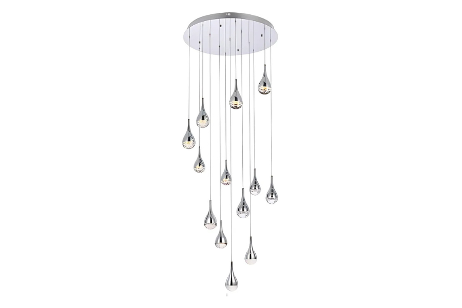 Our exquisite modern LED solid bubble crystal chandelier, a true masterpiece of contemporary design. Meticulously crafted with iron metal, this chandelier showcases a captivating arrangement of solid bubble crystals that exude an enchanting allure. With adjustable height functionality and compatibility with sloped ceilings, installation is a breeze, requiring no assembly. Emitting a warm temperature of 3000K, the energy-efficient LED lighting creates a cozy and inviting ambiance. Elevate your space with this stunning chandelier, effortlessly combining sleek iron with the mesmerizing beauty of solid bubble crystals, and immerse yourself in a realm of modern elegance and luminous warmth.