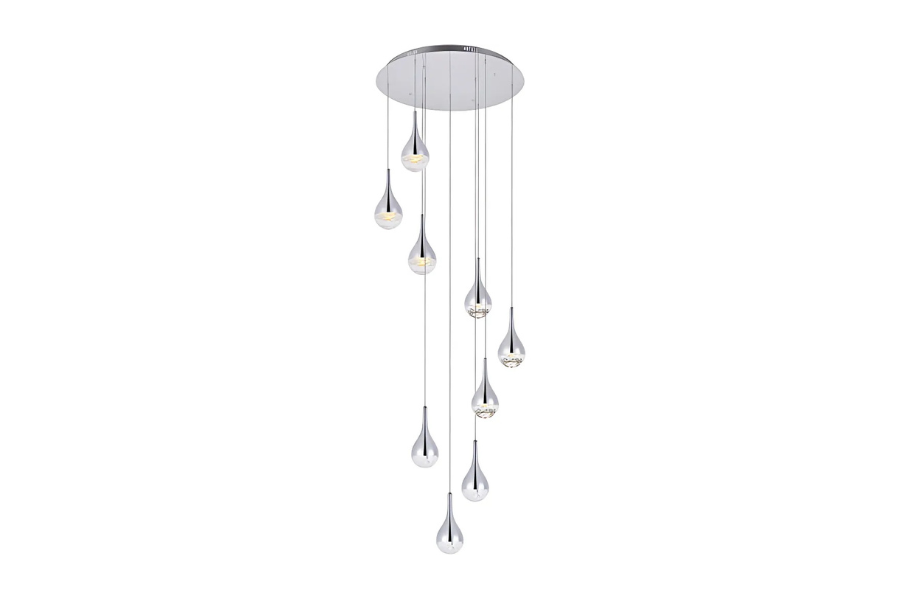 Our exquisite modern LED solid bubble crystal chandelier, a true masterpiece of contemporary design. Meticulously crafted with iron metal, this chandelier showcases a captivating arrangement of solid bubble crystals that exude an enchanting allure. With adjustable height functionality and compatibility with sloped ceilings, installation is a breeze, requiring no assembly. Emitting a warm temperature of 3000K, the energy-efficient LED lighting creates a cozy and inviting ambiance. Elevate your space with this stunning chandelier, effortlessly combining sleek iron with the mesmerizing beauty of solid bubble crystals, and immerse yourself in a realm of modern elegance and luminous warmth.