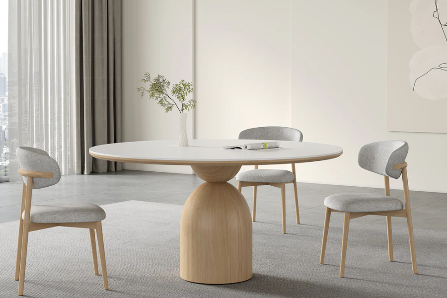 Andrea dining chair in beige linen fabric offers a blend of adaptable style and comfort boasting a modern design that seamlessly complements your dining room decor.
