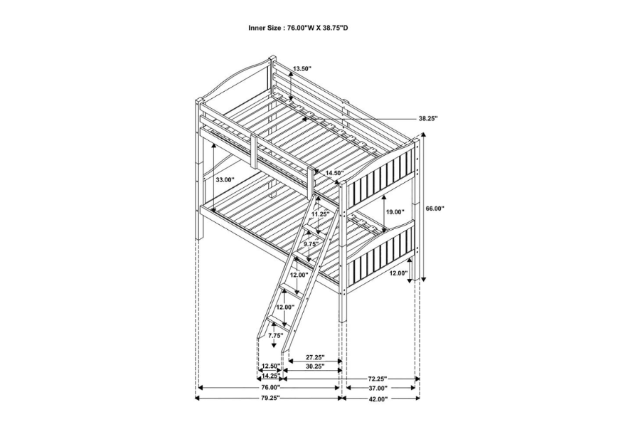 * Save space in your kid's bedroom or guest room with this modern bunk bed that perfectly combines simplicity, style, and safety * Angled ladder makes getting to the top a breeze and guardrails on top bunk keep your children safe throughout the night * Seamlessly separates into two individual beds easily and conveniently * Available in twin-over-twin and twin-over-full configurations * Constructed with solid rubberwood for lasting durability * Slat kits included * Available in espresso, black, white, grey, and blue |