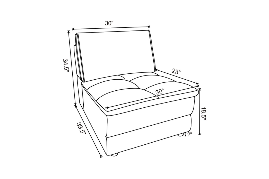 - Contemporary armless chair with grid-tufted design - Soft blue corduroy upholstery for a cozy, stylish look - Fully encased solid and engineered wood frame for durability - Sinuous spring seating with pocket coil springs for comfort - Spacious and supportive seat ideal for lounging - Versatile addition to any living space |