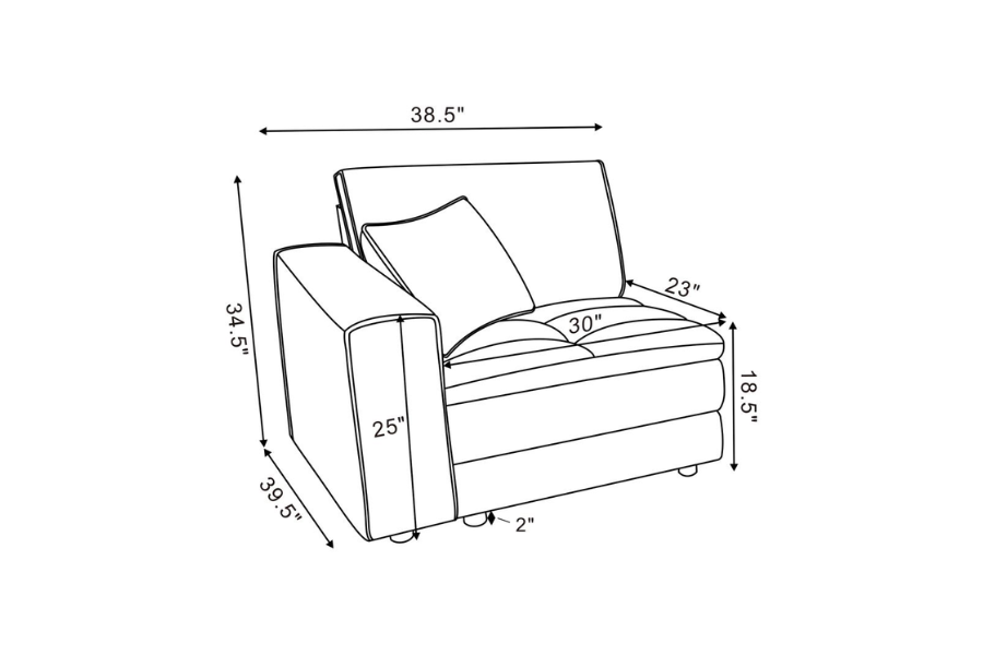 | - LAF chair for modular sectional sofa - Soft blue corduroy fabric with grid-tufted design - Fully encased solid and engineered wood frame - Sinuous spring seating and pocket coil spring durability - Attached seat and reversible back cushions - Functional and stylish addition to modular seating |