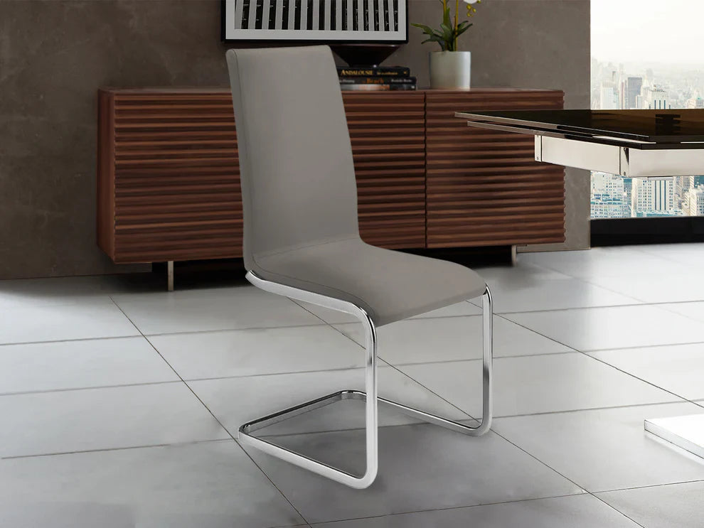 The Venini furniture Aurora Set of 2 dining chair in taupe top grain leather offers a blend of adaptable style and comfort boasting a modern design that seamlessly complements your dining room decor.