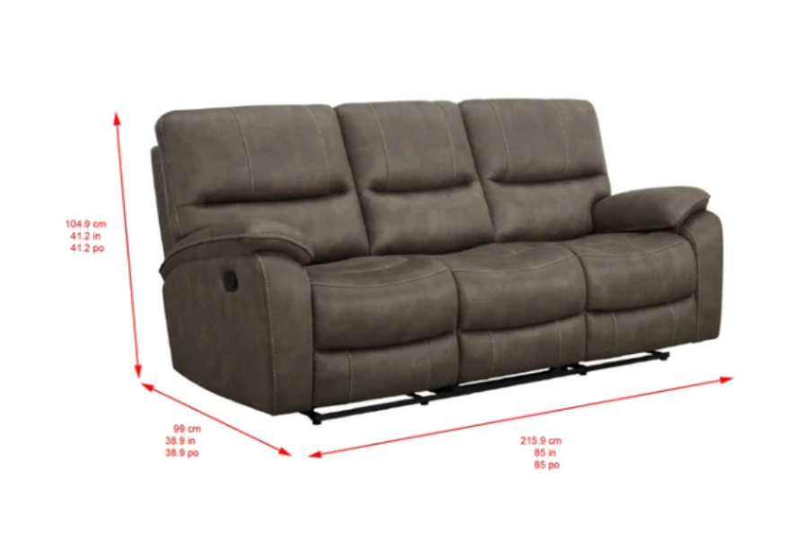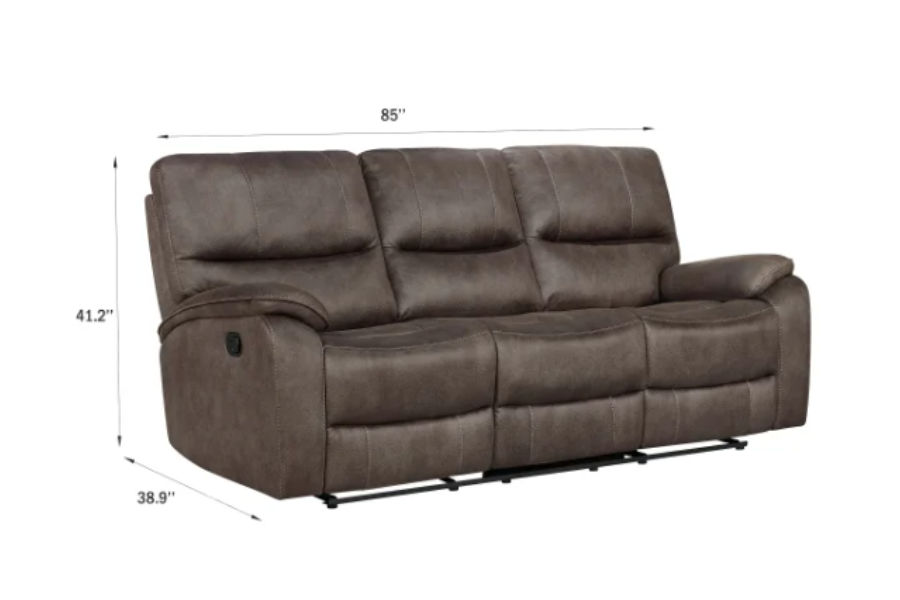- Reclining Sofa: 85” L x 38.9” W x 41.2” H
