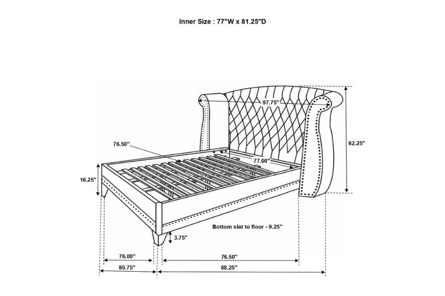 | * This majestic upholstered bed in soft white velvet, accented with crocodile textured white leatherette and individually hammered silver nailheads will add a touch of elegance to your sleeping environment * Extra tall headboard detailed with beautiful crystal button tufting * White performance velvet for stress free maintenance * Constructed with solid hardwood, plywood and manufactured wood * Steel tapered chrome legs |
