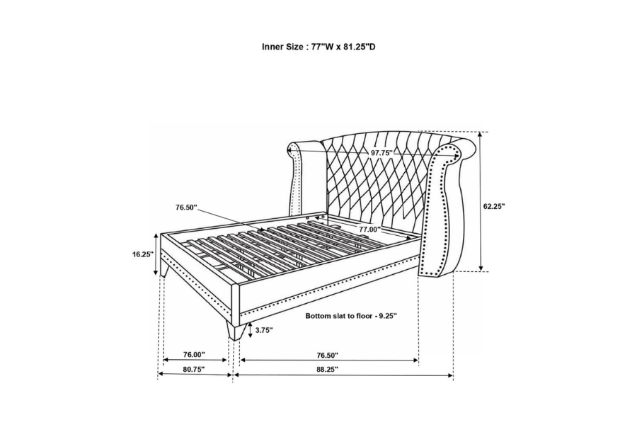 * This majestic upholstered bed in soft white velvet, accented with crocodile textured white leatherette and individually hammered silver nailheads will add a touch of elegance to your sleeping environment * Extra tall headboard detailed with beautiful crystal button tufting * White performance velvet for stress free maintenance * Constructed with solid hardwood, plywood and manufactured wood * Steel tapered chrome legs |