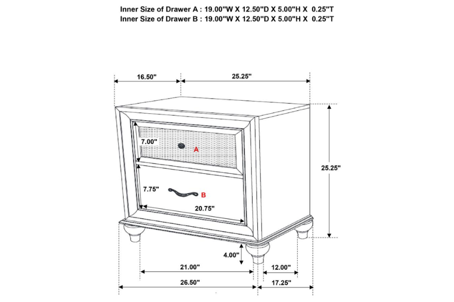 Includes: One (1) queen bed, one (1) nightstand, one (1) dresser, one (1) dresser mirror, and one (1) chest |