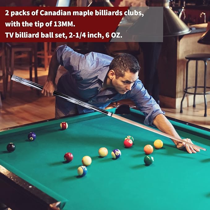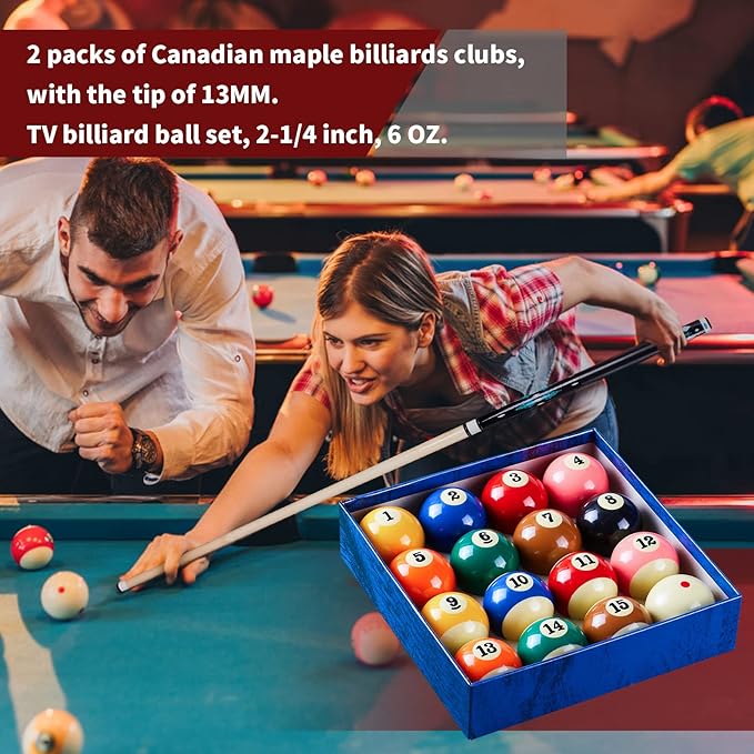 Set includes: 2 Canadian Maple Cue and TV Billiard Ball Set