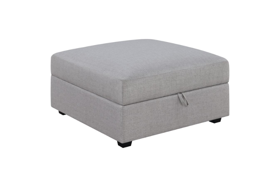 * Contemporary modular sectional sofa set in soft gray offers modern character to living room * Includes three armless chairs, two corners, and storage ottoman to best suit your space * Understated wedge details add character to clean lines, smooth cushions pair with patterned accent pillows to deliver dimension * Exceptional seating support and plush cushions create comfort for family and friends * Storage ottoman allows for tucking away of blankets and other essentials to keep living room looking its best |