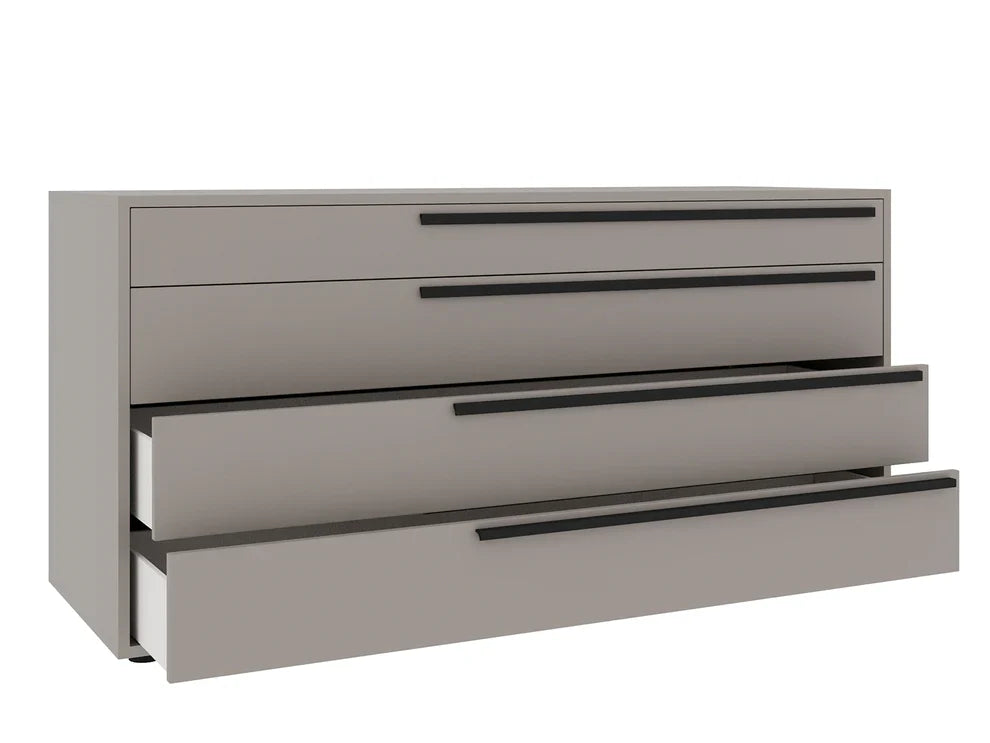 The Carter dresser in taupe matte by Casabianca Home provides both versatile style and comfort with a ultra-modern that can easily be integrated into your current bedroom decor. This Carter dresser features four soft close drawers adding elegance with functionality to your space.