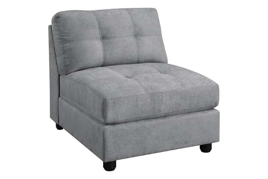 * The Claude sectional exudes style and plush comfort * Its ultra-soft fabric makes it a perfect piece for lounging * Each piece is adorned with tufting on both the back and seat cushions * Three modular pieces make it easy to build a sectional perfect for any space * Ottoman can be used floating or next to any piece to create a chaise |