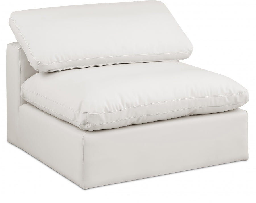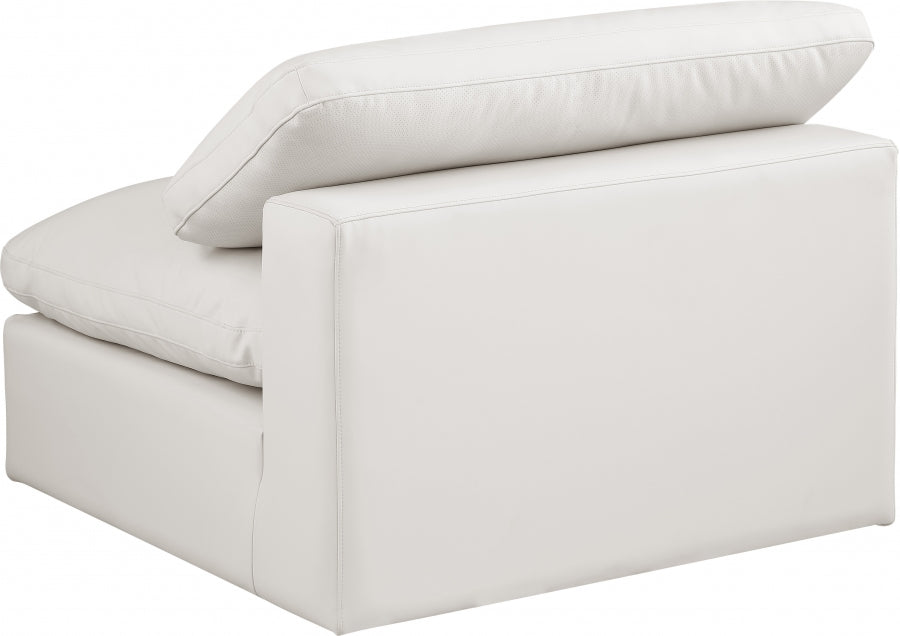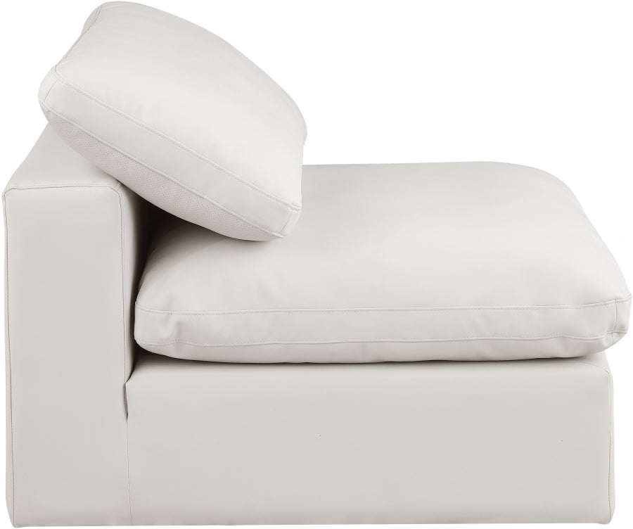 Elegant and eye-catching, the stunning cream faux leather Comfy Modular Armless Chair from Venini Furniture is the perfect addition to any space.