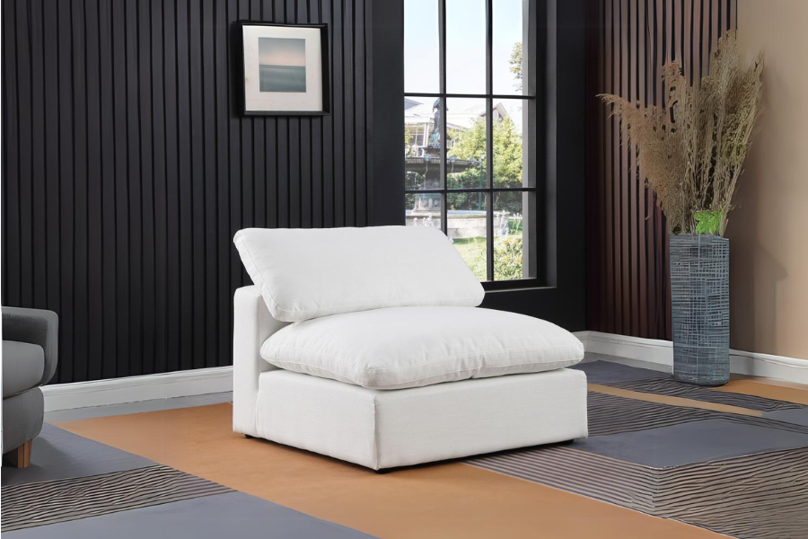 Elegant and eye-catching, the stunning cream linen textured fabric Comfy Modular Armless Chair from Venini Furniture is the perfect addition to any space.