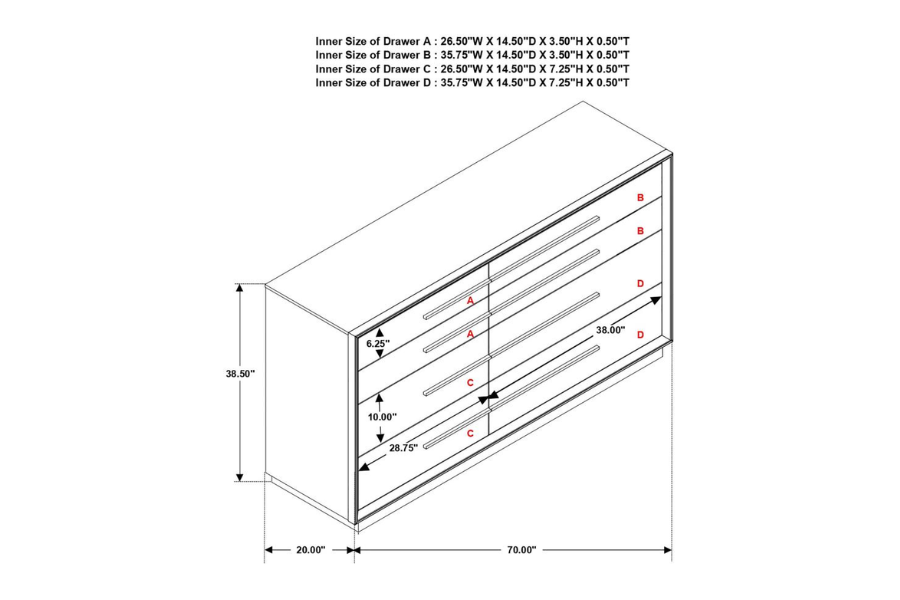 * Introduce modern, linear asymmetry with elegant wood and metal details * Case fronts feature metal trim that makes a sleek statement for the collection * Vaulted headboard creates dramatic height * Exclusive Coaster design |