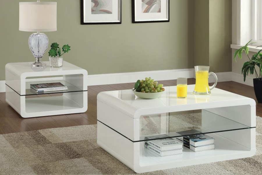 Elana 1-shelf Rectangular Coffee Table White High Gloss 703268