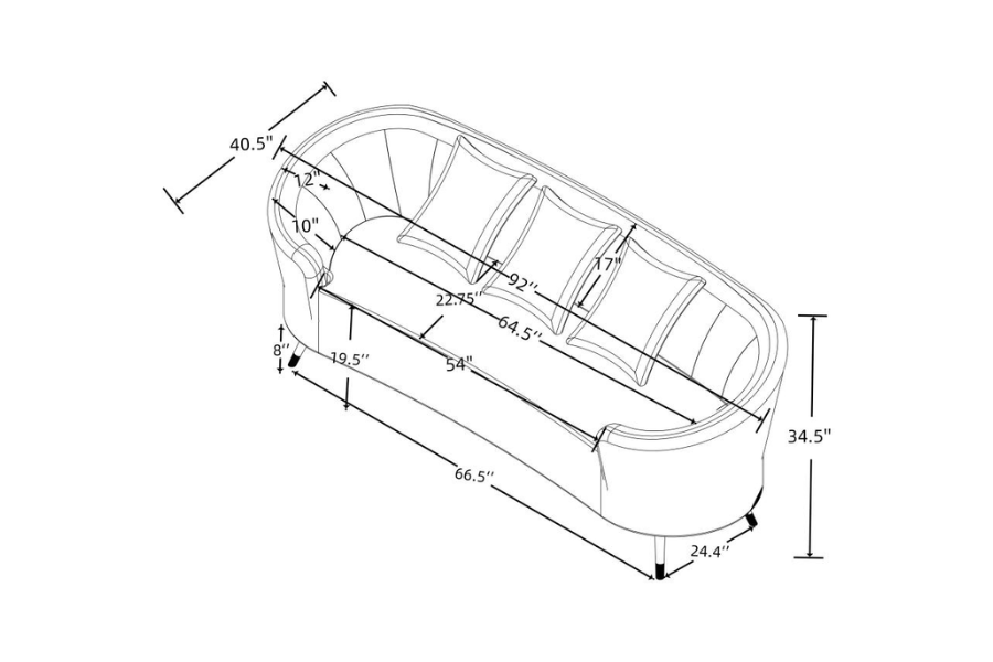 * Show off your curve appeal with this modern sofa, perfect for a living room or den * Designed to float in the center of a room, creating an attractive focal point * Features extra wide channel details framing a kidney-shaped bench seat for a unique look * Comes with premium filled accent pillows featuring a wide corduroy stripe and plum textured boucle for added texture and dimension * Supported by stylish tapered black powder coated metal legs, adding a sense of contrast and vintage touch. |