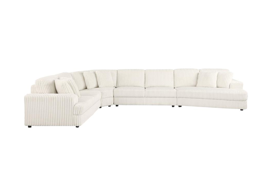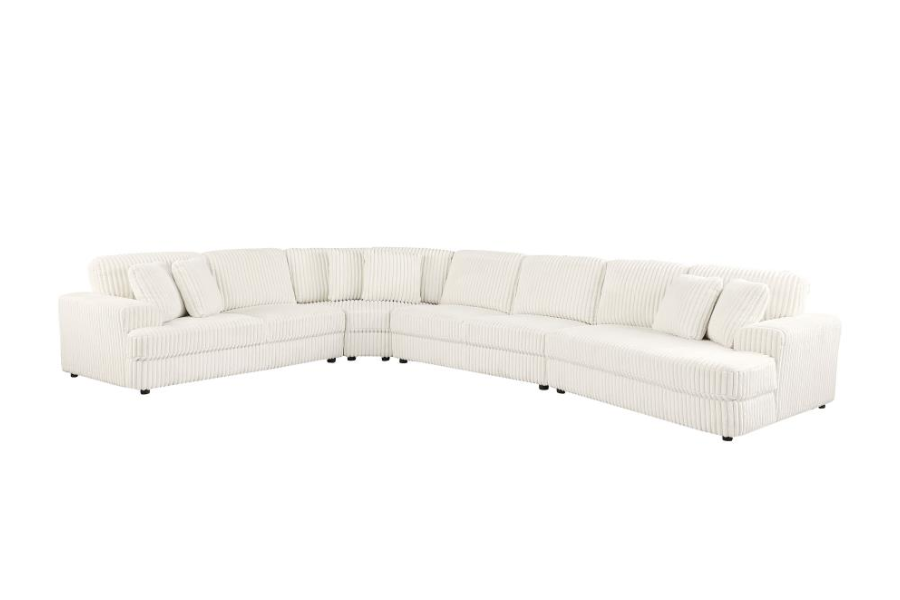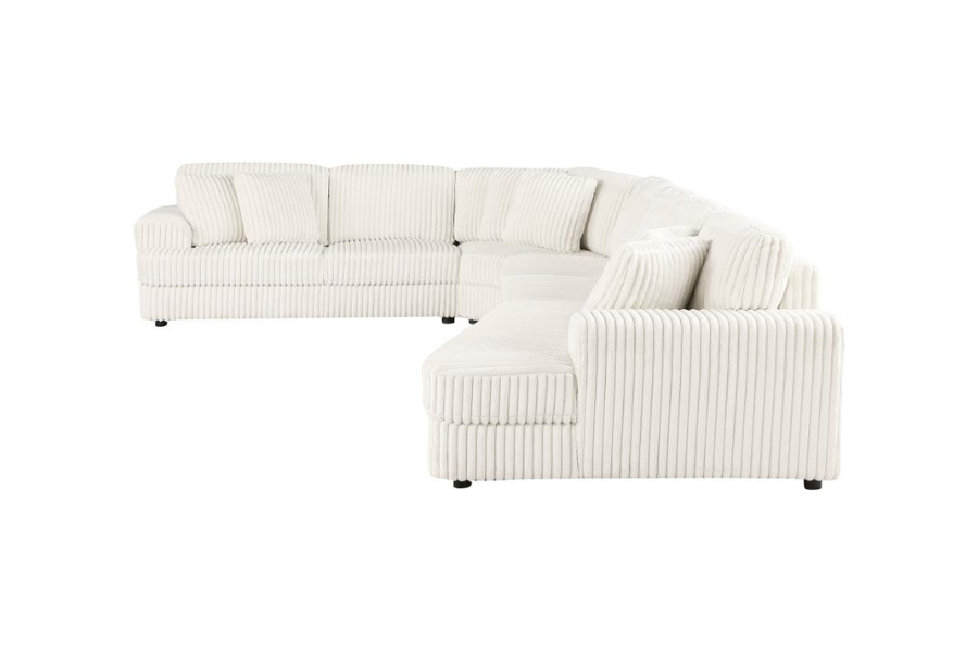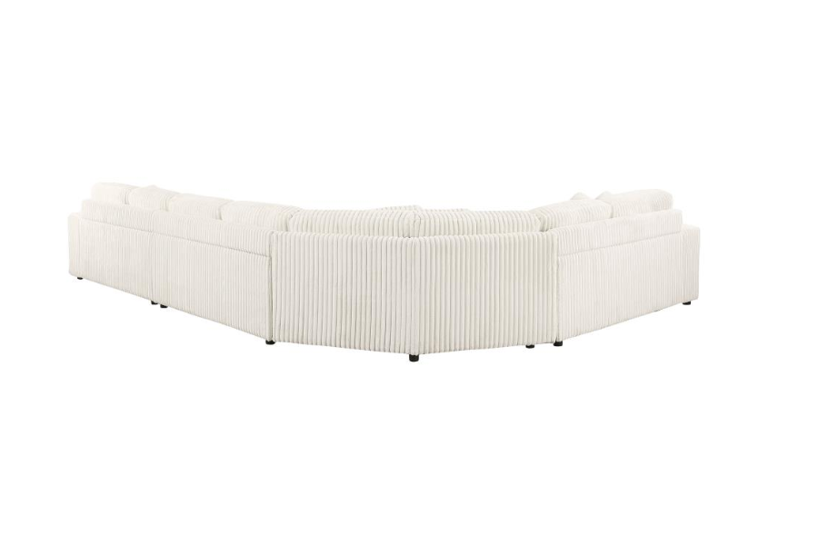 | - Luxurious four-piece sectional sofa set - Upholstered in ivory wide corduroy for a soft, fur-like texture - Grand-scale design provides ample seating for large families or gatherings - Attached seats for a tidy appearance and extended longevity - Reversible back cushions for even wear - Six pillows included for added comfort and style |