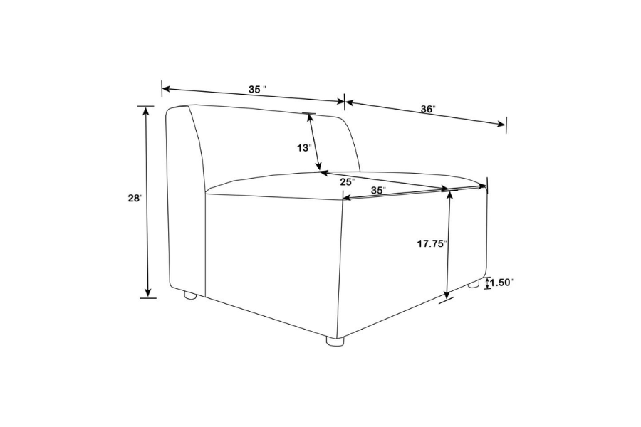 * Modern stylized design * Modular, popular for customizable seating configurations * Performance fabric that allows time to quickly wipe up spills. Water based liquids will repel off * Pocket coil seat construction for comfort |
