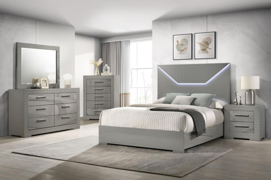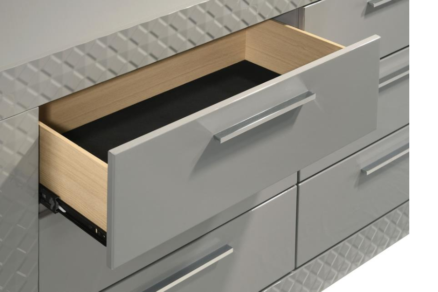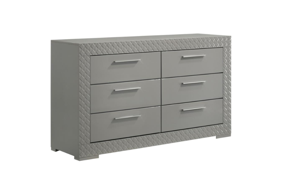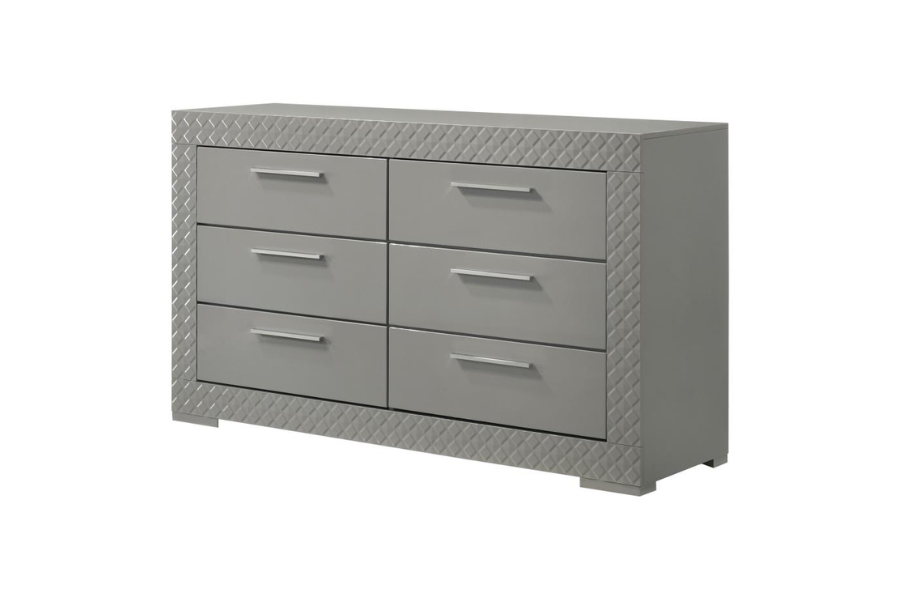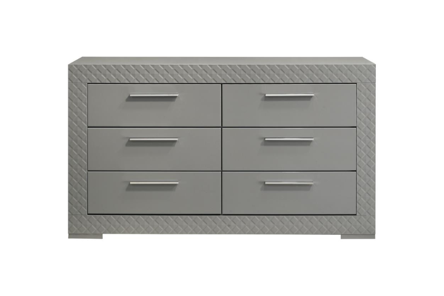 Ives 6-drawer Dresser Cabinet Grey High Gloss 224973