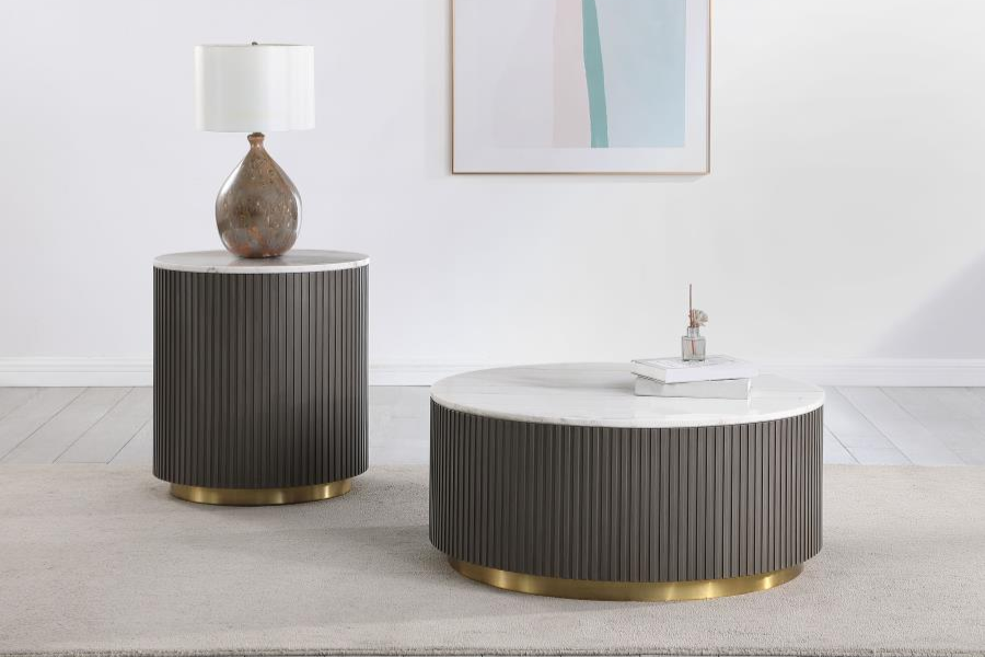Jason Round Marble Top Side End Table White and Charcoal 710417 Comming Soon