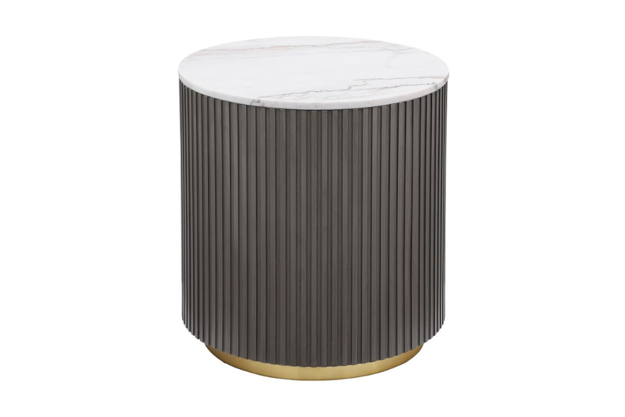 * Luxurious marble instantly elevates the look and feel of a modern round end table * Luxe white marble provides a chic tabletop, with subtle veining for organic character and depth * Ribbed base design in a black finish creates texture and established a timeless drum silhouette * The perfect choice for a refined entryway, or in a chic living room seating group * Feet feature plastic glides for smooth, seamless placement on any flooring type |