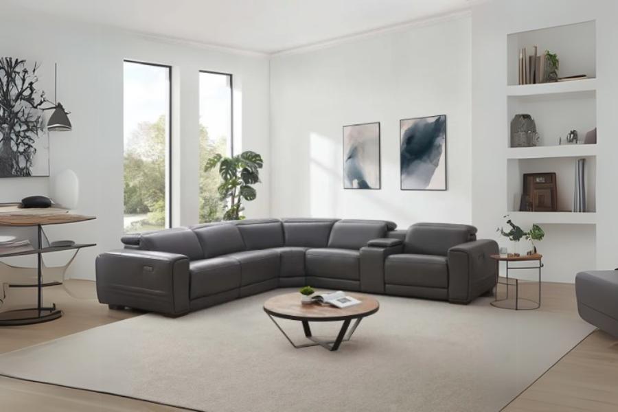 Karson Leather Power Reclining Sectional with Power Headrests