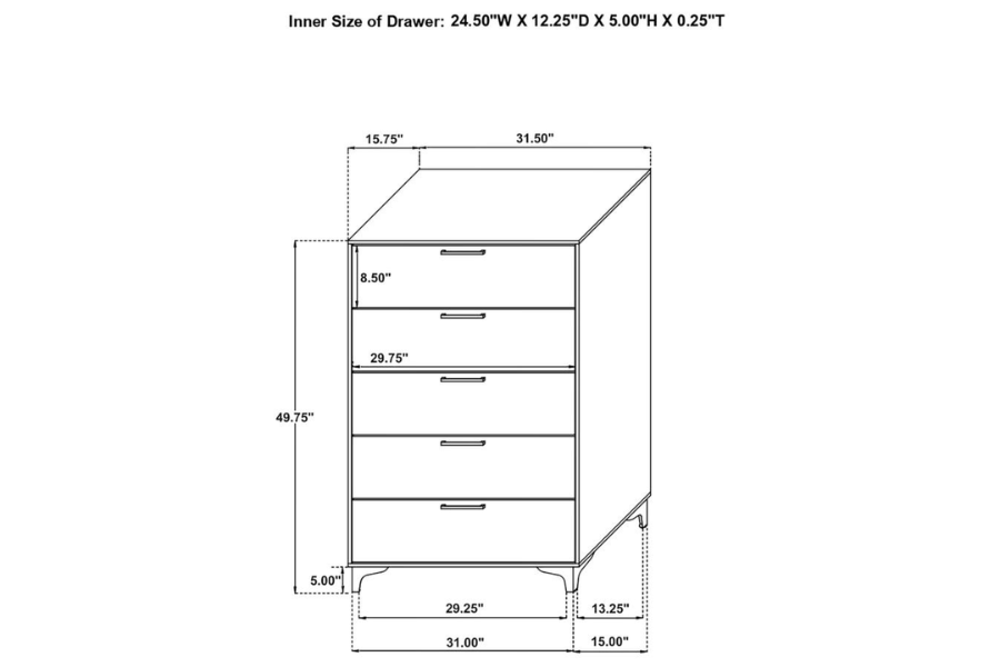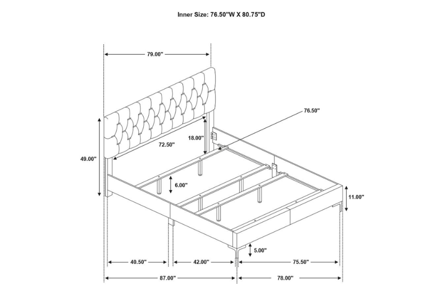 Includes: One (1) eastern king bed, one (1) nightstand, one (1) dresser, one (1) dresser mirror, and one (1) chest |