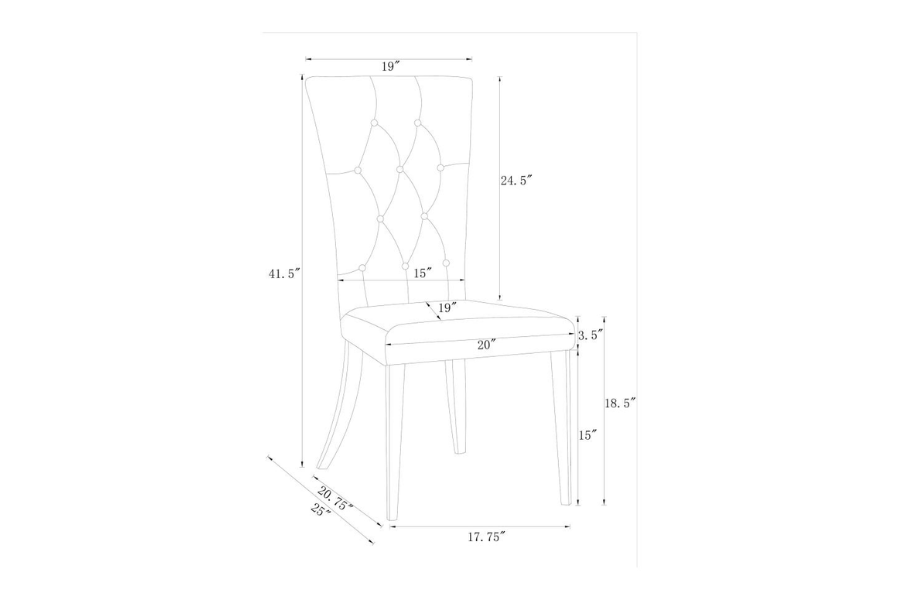 | Host a party at this sophisticated modern glam dining table set, designed with a gorgeous polished chrome finish across its demilune pedestal base and four slender dining chair legs. The spacious rectangular table top presents a faux marble top and seats four comfortably and offers plenty of space for family and friends. Slide up in a Parson style dining chair, upholstered in a luxurious velvet fabric that offers a contemporary flair and soft look and feel. Button tufted backrests fan out toward the top, offering a modern expression to their classic silhouettes. Lastly, a beveled edge surrounds the table top, presenting a hint of intricate texture to the sleek aesthetic. | |