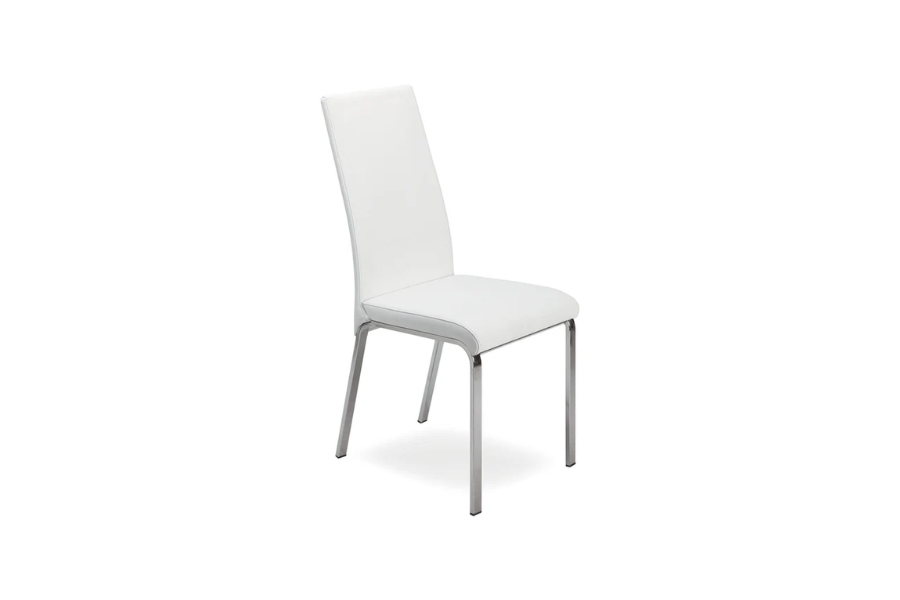 Loto dining chair in white top grain leather offers a blend of adaptable style and comfort boasting a modern design that seamlessly complements your dining room decor.