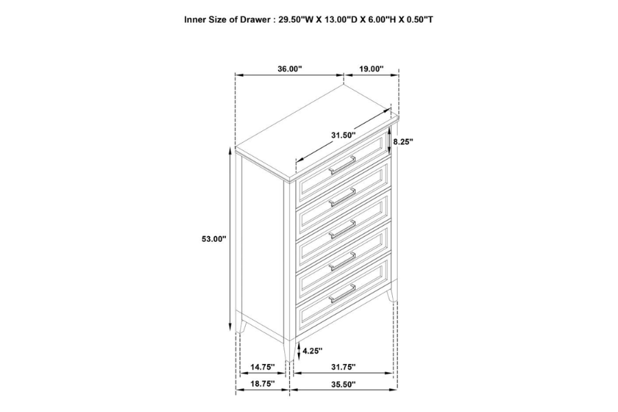 Marielle 5-drawer Bedroom Chest Distressed White 224845