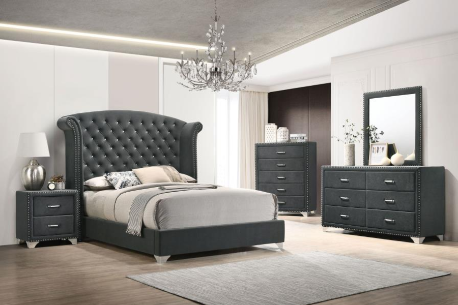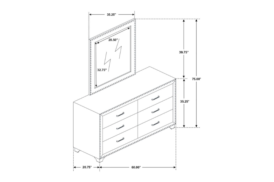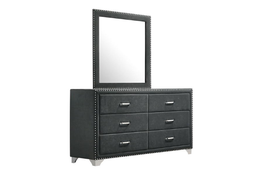 Melody 6-drawer Upholstered Dresser with Mirror Grey 223383M Comming Soon