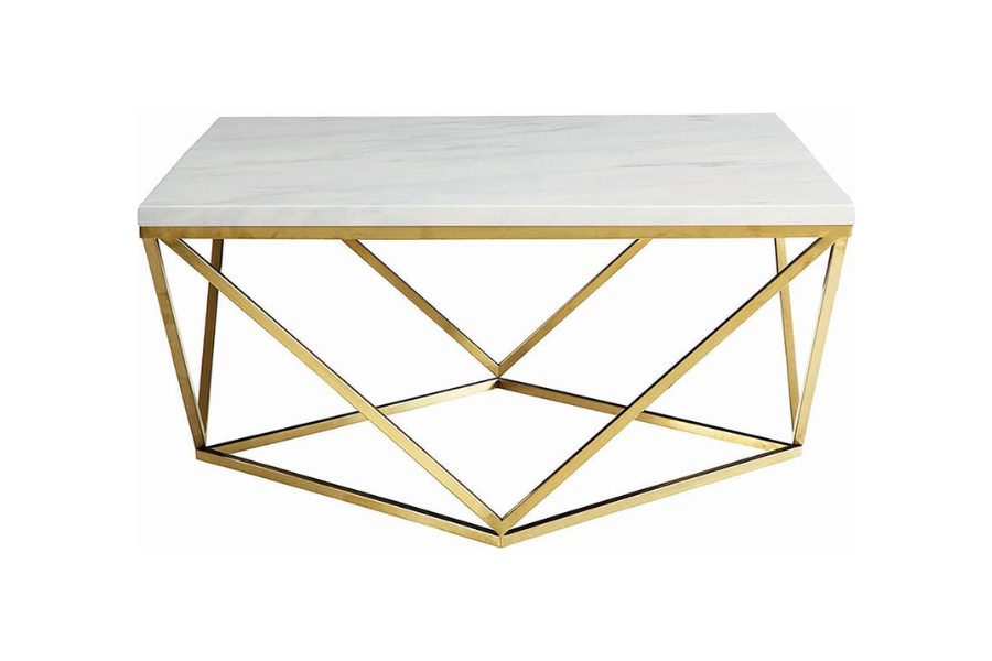Meryl Square Faux Marble Top Coffee Table White and Gold 700846