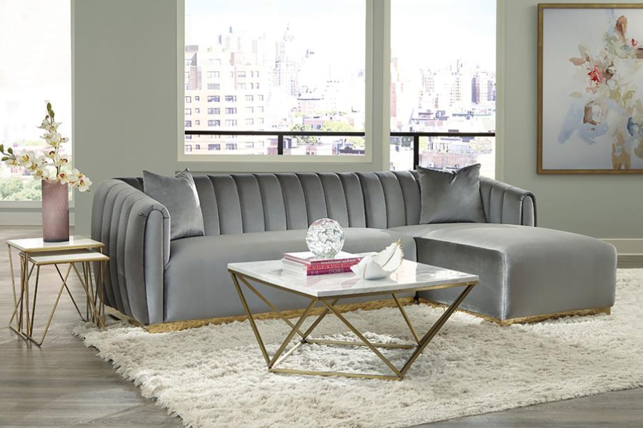 * Hip and modern occasional table set * Opulent faux Carrera marble table top * Gleaming brass hardware * Stylish statement piece that enhances any home |