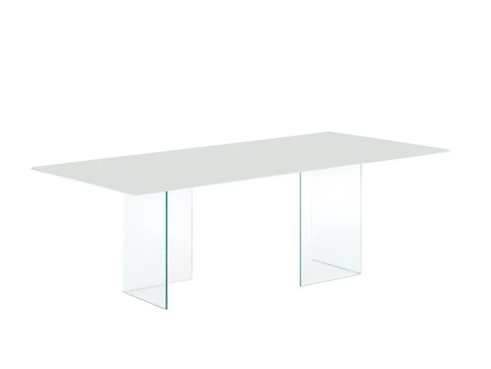 The Miami dining table in clear glass by Venini Home features clean, modern lines adding a sophisticated look and edge to any room.