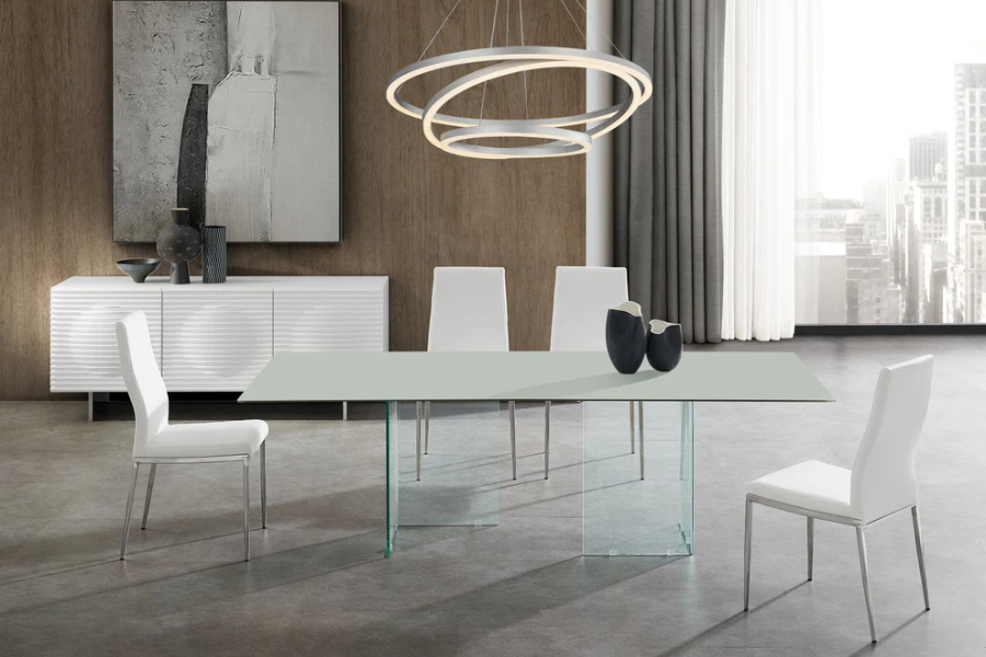The Miami dining table with clear base and white top by venini furniture provides today's home with ultra-modern luxury designs that brings a blend of sophisticated styling and modern contemporary designs into any space.