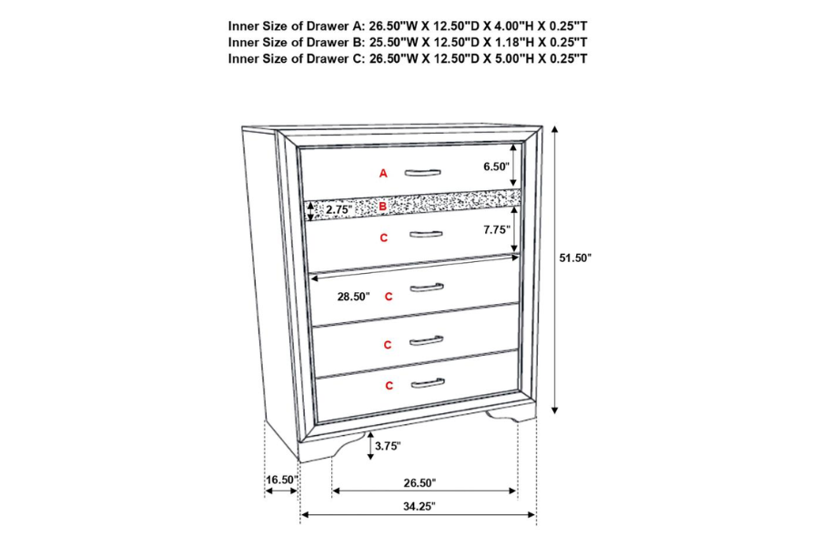 Miranda 5-drawer Bedroom Chest Black 206365