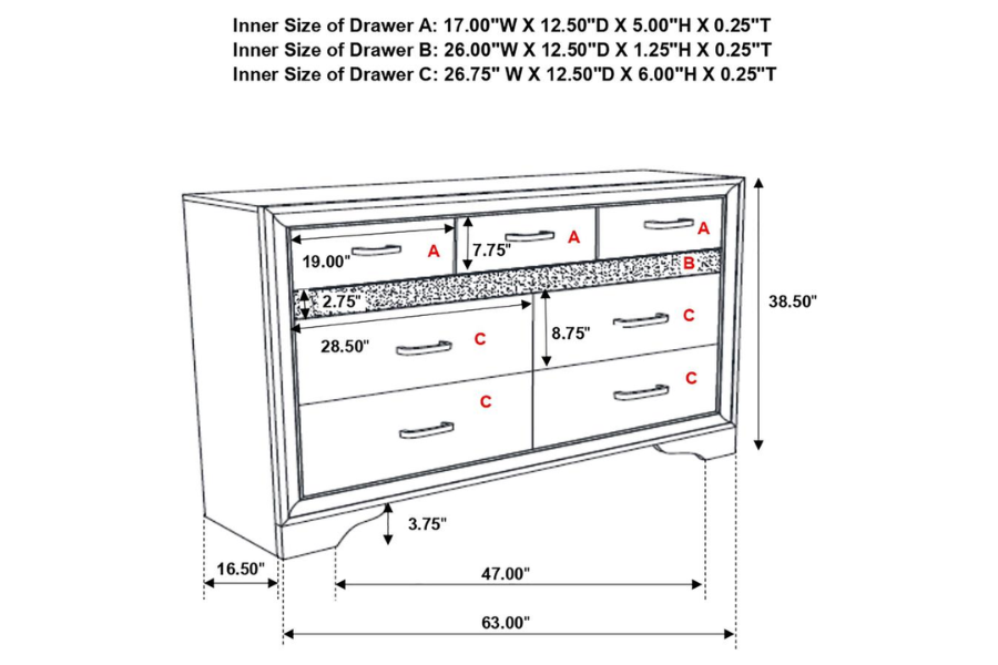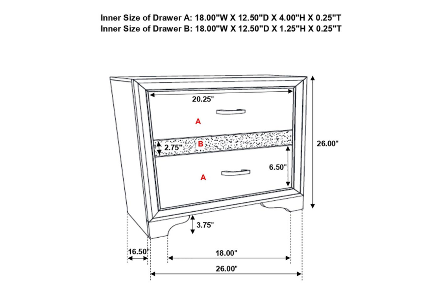 * Glittering stripes add energy to a contemporary design with glamour at the forefront * Elegant and timeless design with just the right amount of bling * Bed features storage at footboard and is fully slatted * Bed has platform system that will accommodate most mattress types and warranties including memory foam * 35mm drawer glides used for secret drawers in dresser & chest * Exclusive acrylic crystal pull handles set this collection apart * Available in a white or black finish |