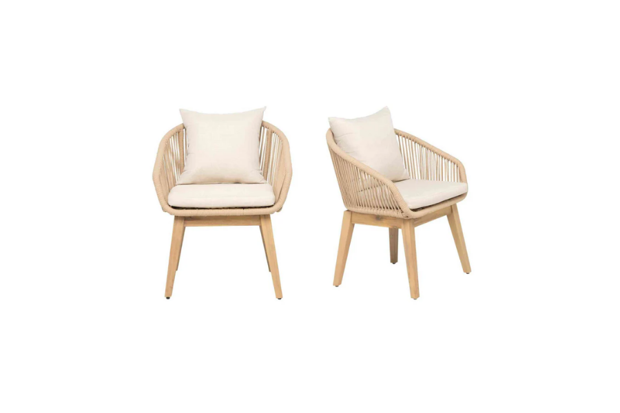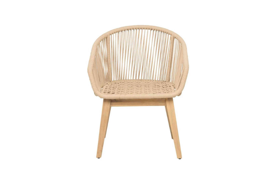 Experience alfresco dining at its finest with the Panama Jack 5-Piece Cabo Dining Set. This ensemble, meticulously crafted from solid Acacia wood, showcases a luminous honey-hued finish, perfectly blending sophistication with endurance. Comprising four elegantly designed dining chairs accentuated with modern tan cording and a robust teak round dining base, this set encapsulates the charm of outdoor dining. Each chair features seats dressed in a 100% polyester fabric, ensuring both comfort and rapid drying capabilities, ideal for any weather scenario. For those with a keen eye for personalized aesthetics, customizable Sunbrella fabric options are readily available. To preserve the captivating golden teak shimmer of the Acacia wood, a periodic light sanding combined with teak oil application is recommended. Step into a realm of style and durability for your outdoor dining occasions with the Cabo collection from Panama Jack.