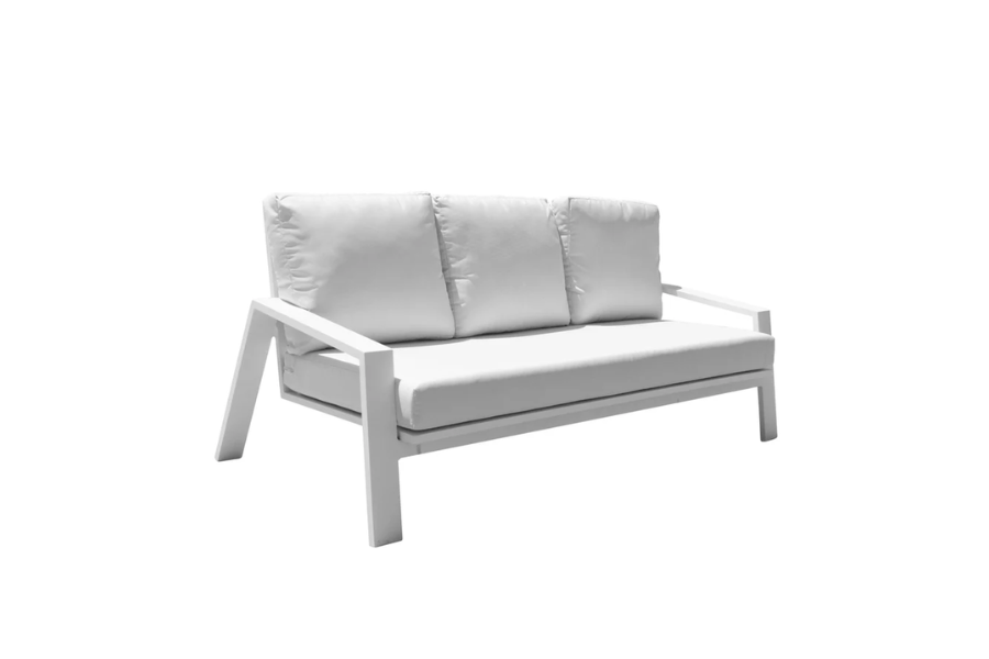 Experience the beauty of the Mediterranean with the Panama Jack Mykonos 4-Piece Seating Set. Part of the Mykonos seating collection, this set includes a sofa, two lounge chairs, and a coffee table, all crafted from bright white aluminum frames that evoke the stunning Greek isles. The sleek lines and angles on the frames offer a modern and sophisticated touch to any outdoor space, while the plush cushions provide a serene and tranquil spot for lounging under clear blue skies. Customize your Mykonos Seating Set with one of our many Sunbrella outdoor fabric options to add your personal touch to this stylish collection. Whether you're hosting a summer barbecue or lounging with a good book, the Panama Jack Mykonos 4-Piece Seating Set is the perfect addition to your outdoor oasis.