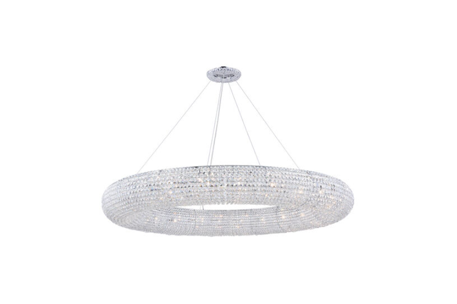 The magnificent chandeliers of the Paris collection live up to their namesake’s title as the “City of Light.” The chrome-finish fixtures exude glamour with a sparkling circle of clear, royal-cut octagon crystals highlighted by 18 or 24 interior lights (not included). Topping off the extravagance is a crystal halo dressing the canopy that replicates the fixture. Create your own enlightened era in your home with this contemporary chandelier that comes fully assembled. It will provide all-around light for your dining room, living room, bedroom, bathroom, or entryway.