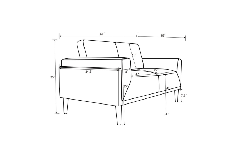 * Innovative frame within a frame design with chic fabric and topstitch details * Reversible back cushions and pocket coil seat construction for comfort * Streamlined silhouette with mitered front accents and track arms * Tall, black cylinder-shaped wooden legs for stability and style * Ready to be the centerpiece in any contemporary living space |