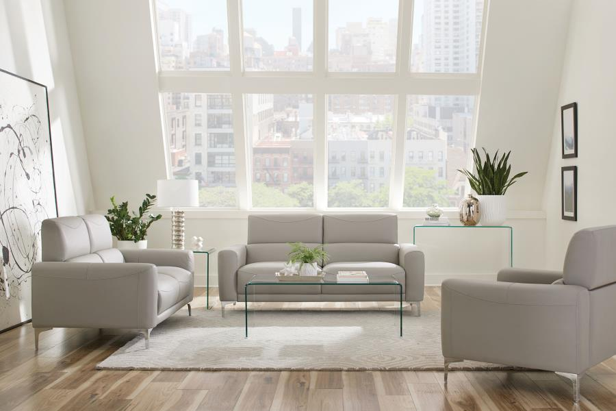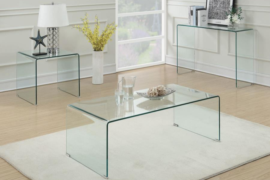 * Charming, retro modern style occasional set * Softly curved table top edge creates a sleek, modern silhouette * Clear finish for a contemporary look |