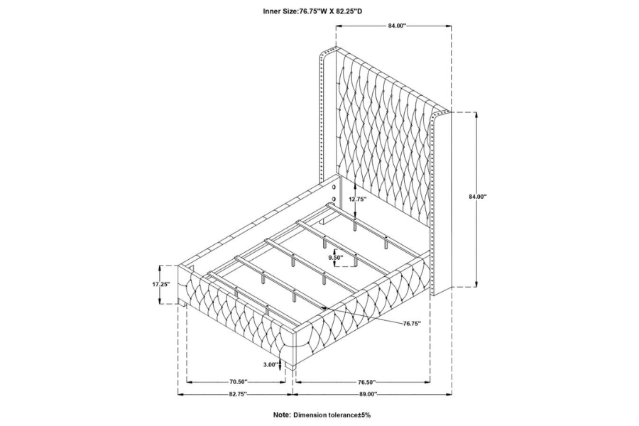 * Truly a focal point for any bedroom decor * Extra tall button tufted headboard framed with individually hammered silver nailheads * Button tufted side rails and footboard complete the look * Upholstered in grey velvet * Constructed with pinewood  |