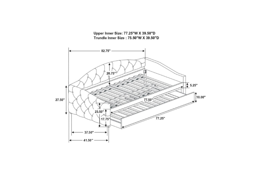 Sadie Upholstered Twin Daybed with Trundle Grey 300638