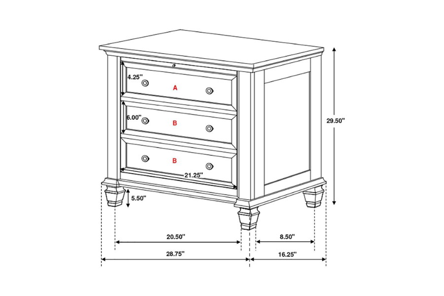 Sandy Beach 3-drawer Nightstand Cream White 201302