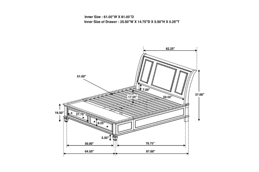 Sandy Beach Wood Queen Storage Panel Bed Cream White 201309Q