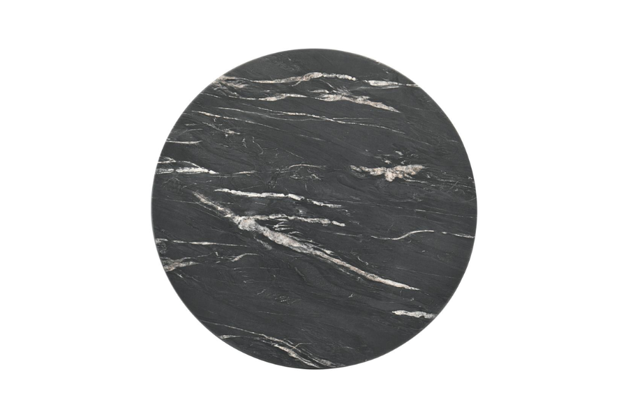 * Round coffee table featuring a robust high-pressure laminate top * Faux black marble surface provides an easy-care, durable alternative to real marble * Solid wood base showcases a dynamic and stable design * The table offers a hassle-free solution to high-end styling * Ideal for those who value both form and functionality in their furniture choices |